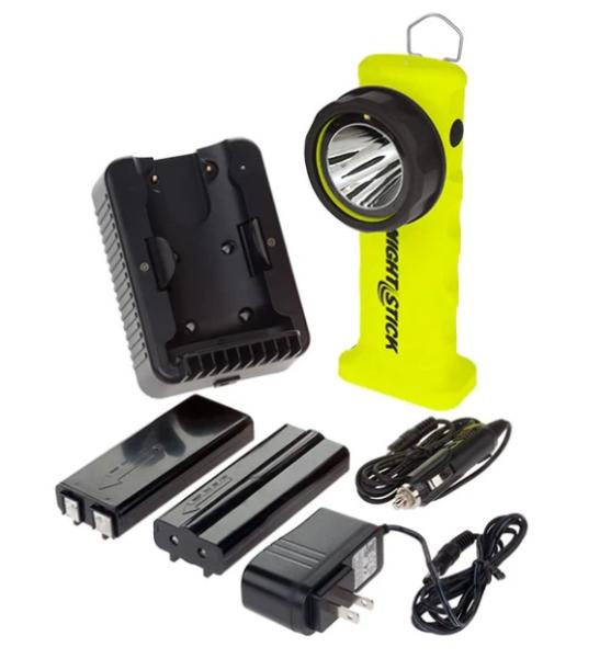 The XPR-5572GA Rechargeable Intrinsically Safe Angle Light is a Flashlight, a Floodlight, and a Dual-Light Angle Light that is cULus, ATEX, IECEx, and MSHA certified Intrinsically Safe Permissible. The flashlight setting offers 3 user-selectable brightness settings of 200, 100, and 60 Lumens plus a strobe feature with a 267-meter beam distance. The ultra-tight beam is perfect for cutting through smoke and lighting up objects at great distances. The floodlight setting has 3 user-selectable brightness settings of 200, 100, and a “Survival Mode” of 20 lumens that provides just enough light in an emergency situation with a run-time of 3 ½ days.